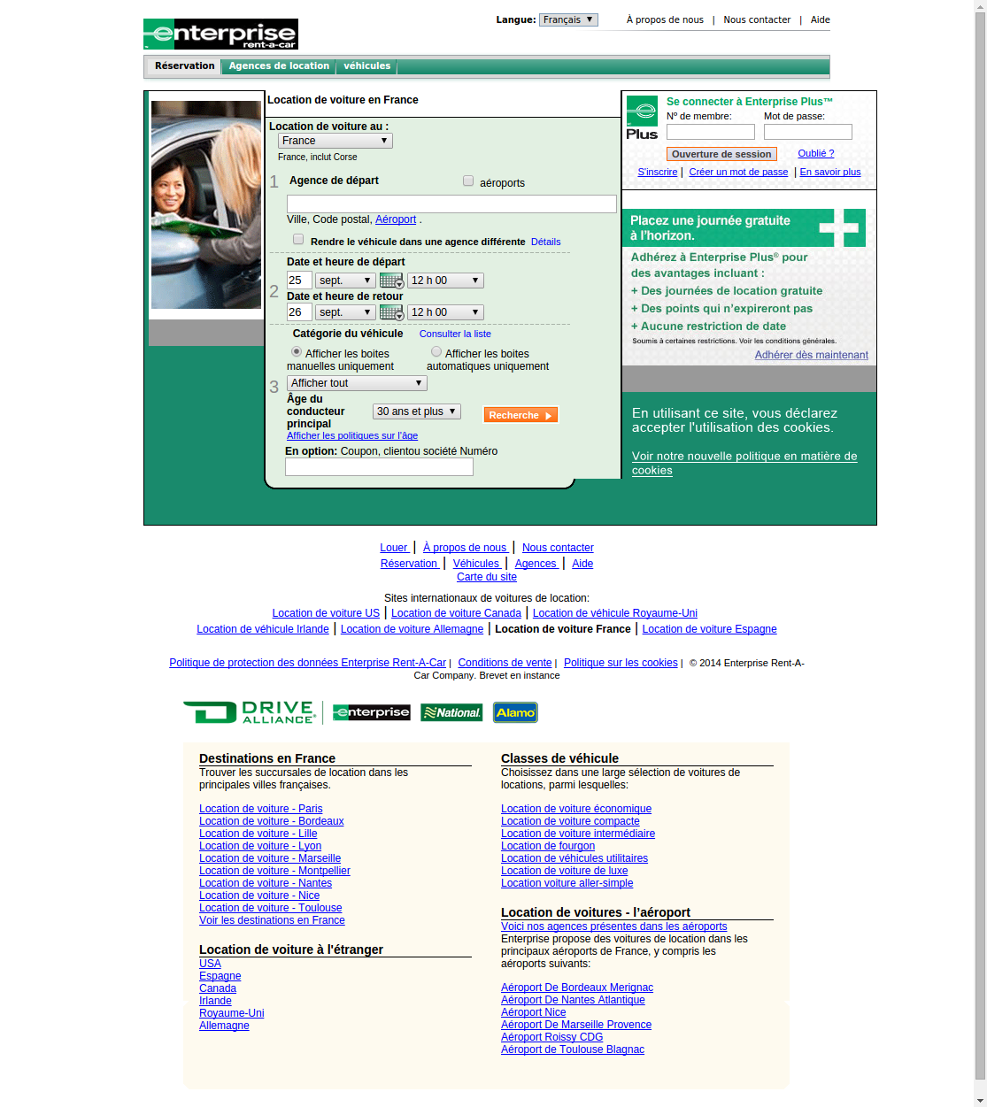 Politique de protection des données Enterprise Rent-A-Car | Conditions de vente | Politique sur les cookies | © 2014 Enterprise Rent-A-Car Company. Brevet en instance