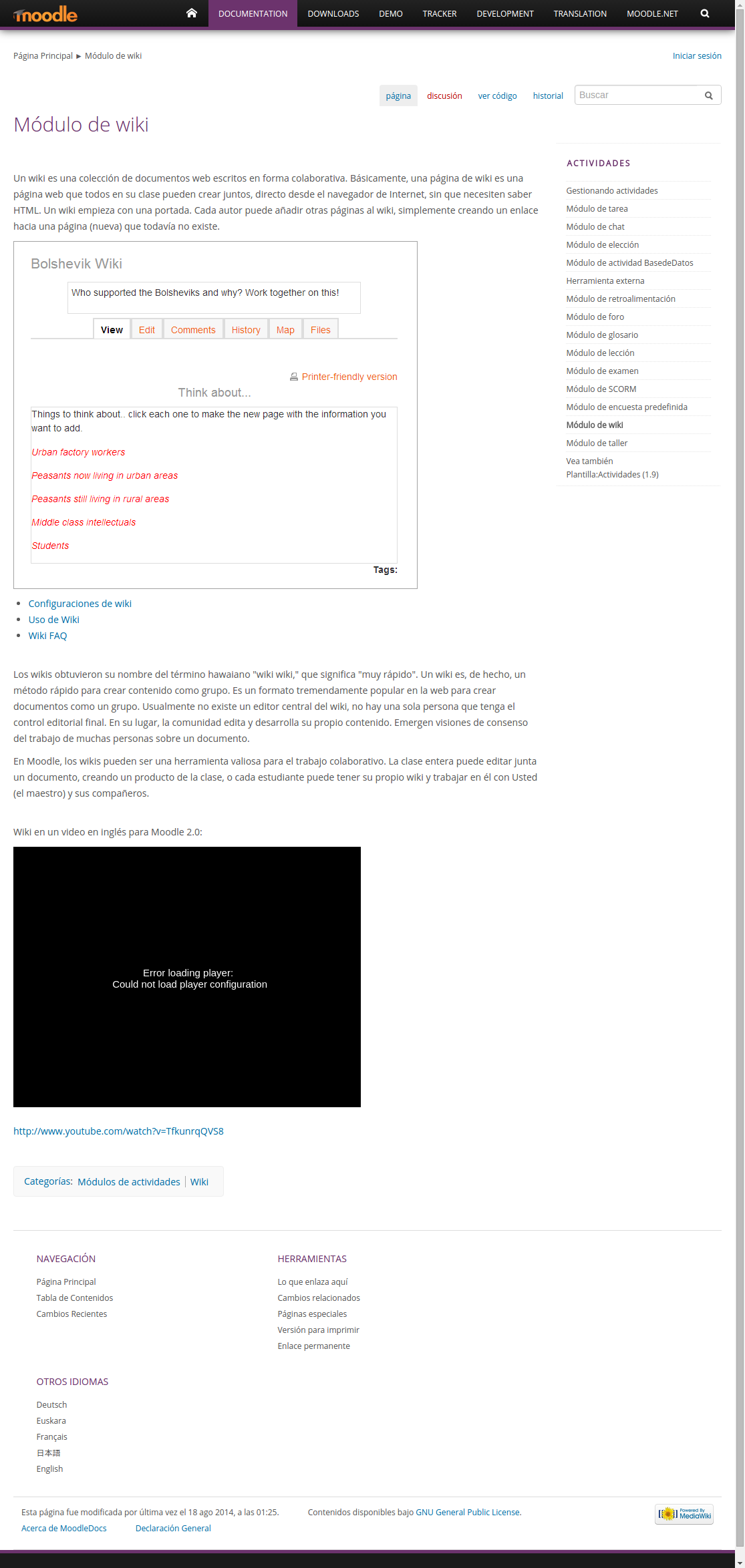 Wiki en un video en inglés para Moodle 2.0:
