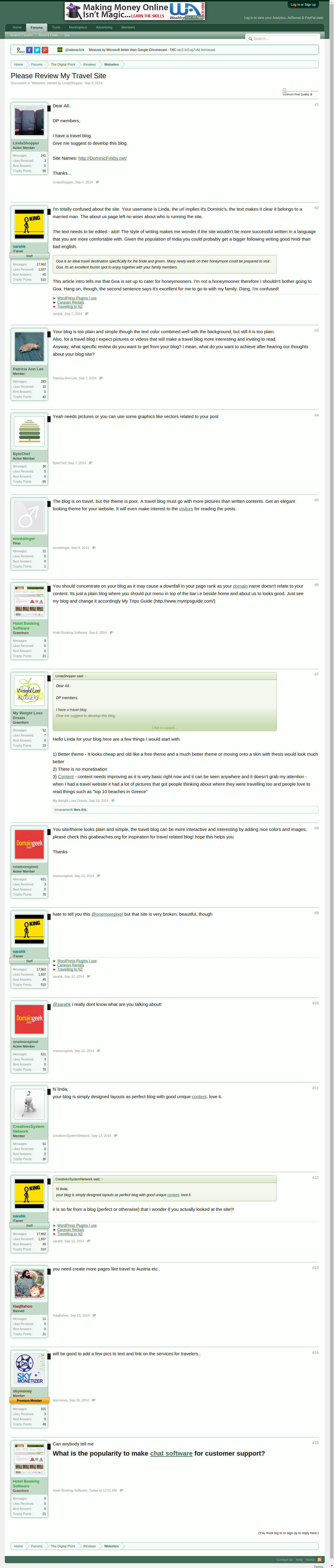 3) Content - content needs improving as it is very basic right now and it can be seen anywhere and it doesn't grab my attention - when I had a travel website it had a lot of pictures that got people thinking about where they were travelling too and people love to read things such as "top 10 beaches in Greece"